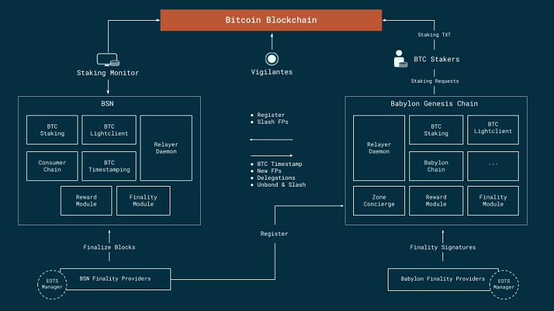 Babylon est un protocole décentralisé qui permet à ses utilisateurs de participer au staking natif de bitcoins directement sur la blockchain Bitcoin, sans intermédiaires classiques comme le wrapping ou le bridging. Le cœur de sa technologie repose sur une architecture de « shared security » (sécurité partagée) qui étend la sécurité solide du Bitcoin à un écosystème décentralisé plus large. Grâce à ça, les détenteurs de BTC peuvent participer simultanément au staking sur plusieurs réseaux, baptisés Bitcoin Supercharged Networks (BSNs), tout en conservant la garde totale et native de leurs actifs.